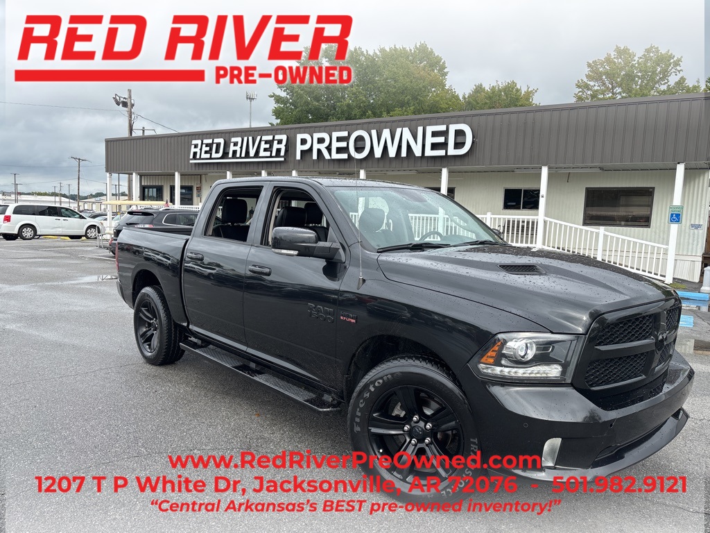Clean CARFAX. CLEAN CARFAX NO ACCIDENTS REPORTED, BLUETOOTH, REAR BACK UP CAMERA, LEATHER SEATING, DEALER SERVICED, SERVICE RECORDS AVAILABLE, SAFETY INSPECTED, SIRIUS XM RADIO, NAVIGATION, FRESH OIL CHANGE, RECENT TRADE, LOCAL TRADE, APPLE CAR PLAY, TAKE EXIT 10B IN JACKSONVILLE!!!!!!, CALL 501-982-9121 OR VISIT US ONLINE AT WWW.REDRIVERPREOWNED.COM, 4x4 Flat Black Badge, Auto High Beam Headlamp Control, Black Exterior Truck Badging, Black Painted Honeycomb Grille, Black Ram Head Tailgate Badge, Black Ram Tailgate Nameplate, Center Hub, Convenience Group, Dual Rear Exhaust w/Bright Tips, Flat Black 5.7L Hemi Badge, Flat Black Ram 1500 Badge, GPS Navigation, Keyless Enter-N-Go, Quick Order Package 26Q Night (DISC), Rain Sensitive Windshield Wipers, Ram 1500 Night Special Edition, Remote Proximity Keyless Entry, Wheels: 20" x 9" Semi-Gloss Black Aluminum. 2018 Ram 1500 Brilliant Black Crystal Pearlcoat Night 4WD HEMI 5.7L V8 Multi Displacement VVT 8-Speed AutomaticWelcome to Red River Pre-Owned. Be sure to visit our virtual showroom of inventory available for purchase. There you will see detailed information about each vehicle, a picture gallery, as well as convenient ways to contact us for more information about that vehicle. We are located at 1207 T P White Drive and are available by phone at 501-982-9121 . You can also get driving directions and hours of service from our user friendly website.