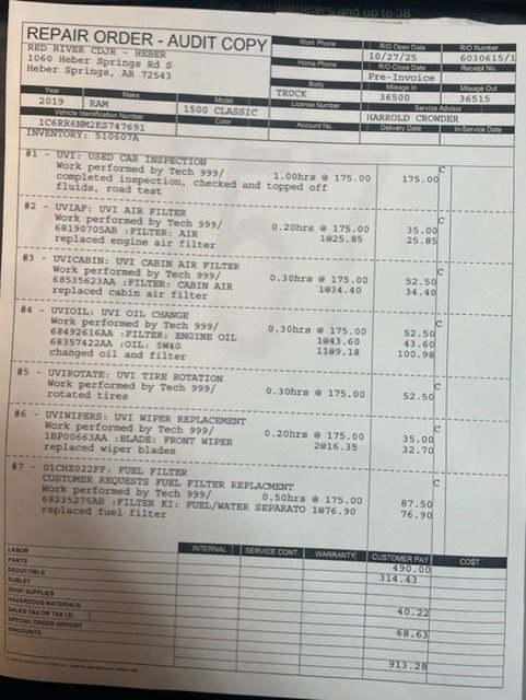 1500 Classic Laramie, 4D Crew Cab, 3.0L V6 Turbodiesel, 8-Speed Automatic, RWD, Granite Crystal Metallic Clearcoat, Black Leather.Granite Crystal Metallic Clearcoat 2019 Ram 1500 Classic Laramie RWD 8-Speed Automatic 3.0L V6 Turbodiesel20/27 City/Highway MPGAwards: * Motor Trend Automobiles of the yearRed River Chrysler, Jeep, RAM and Dodge is your New Used Car Truck or SUV headquarters! Serving Heber Springs, Searcy, Batesville, Conway, Cabot and Mountain View, Arkansas! We will ship anywhere in the US! We offer competitive financing and have certified technicians to help with your maintenance needs. Call us @ 877-652-4076 or visit us at redriverdodge.com.